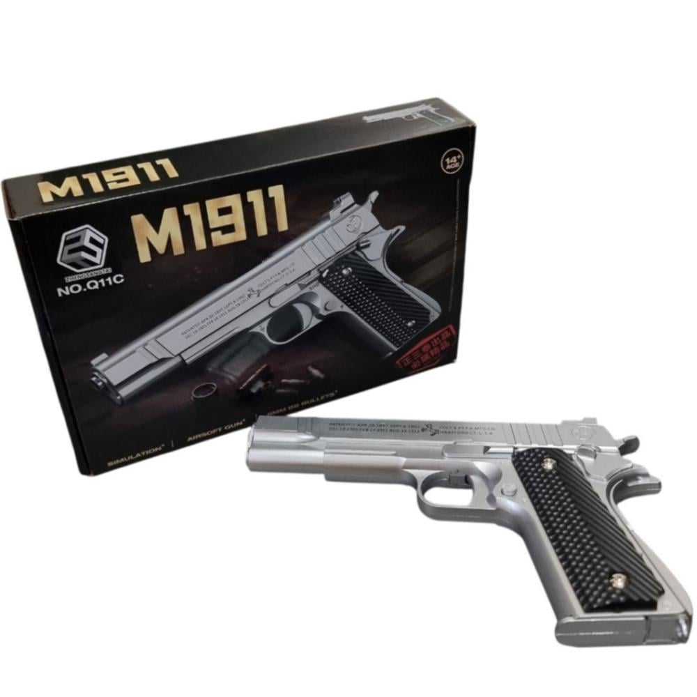 تميّز عن الجميع مع مسدس M1911 بلونه الفضي المعدني اللامع، المصمم لهواة الفخامة والقطع الكلاسيكية. قلبه المعدني يضيف له وزنًا ثقيلًا، مما يعزز من الإحساس الواقعي عند الاستخدام.