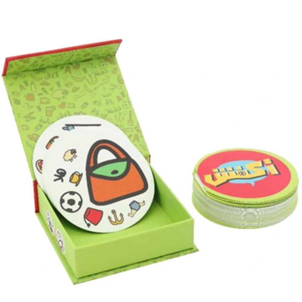 - تكون من 8 أشكال أو رموز على كل بطاقة يوجد أكثر من 50 رمز أو شكل في المجمل ولايوجد سوى رمز واحد مشابه فقط بين أي بطاقتين.