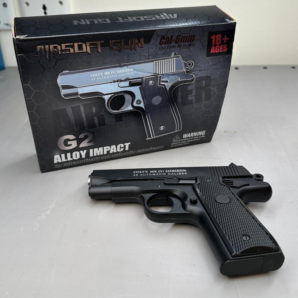 استمتع بتجربة فريدة مع مسدس G2 المصمم لمحبي البساطة والفخامة. يتميز بتفاصيل دقيقة وشكل واقعي يوحي بالاحترافية. مناسب لهواة المحاكاة وجامعي القطع النادرة.